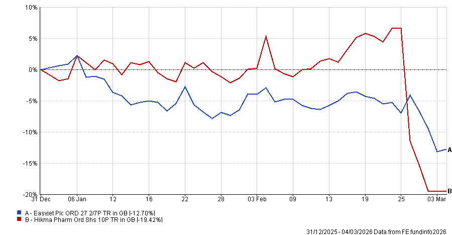 The military action in the Middle East has had a particular impact on the shares of easyJet, which have slumped 9.9% on the back of higher oil prices. However, shares have been on a falling trajectory for some time, down 48% over the past five years and two-thirds from their pre-pandemic levels.